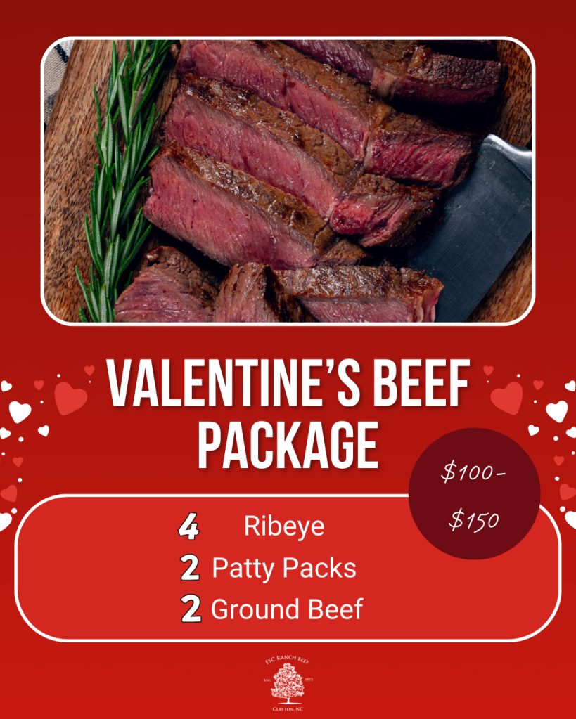 Skip the crowded restaurant and bring the steakhouse home. FSC Ranch Beef has Valentine’s Beef Packages that include four tender ribeyes for the ultimate romantic meal.