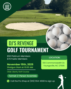 Get ready to swing! The DJ's Revenge golf tournament is happening on November 15th at Olde Liberty Golf Course. Reserve your spot by calling the Pro Shop at (919) 554-4690 today! … [Read more...] about DJ’s Revenge is BACK at Olde Liberty!