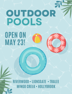 Our outdoor pools at Riverwood, Lionsgate, Tralee, Mingo Creek, and Hollybrook will OPEN on Saturday, May 23! Visit www.FSCSportsClubLive.com to keep up with live updates all season long. We can’t … [Read more...] about The Countdown to Pool Season is On!