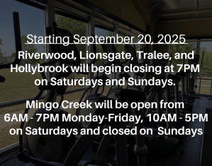 Starting September 20, Riverwood Athletic Club, Lionsgate Athletic Club, Tralee Athletic Club, and Hollybrook Athletic Club will begin closing at 7PM on Saturdays and Sundays. Mingo Creek Athletic … [Read more...] about Off-Season Athletic Club Hours